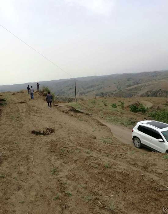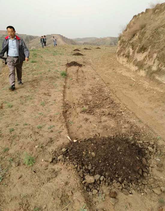 山花爛漫公司小雜糧種植基地負責人賀志平、賀利明在基地實地指導農民施用農家肥